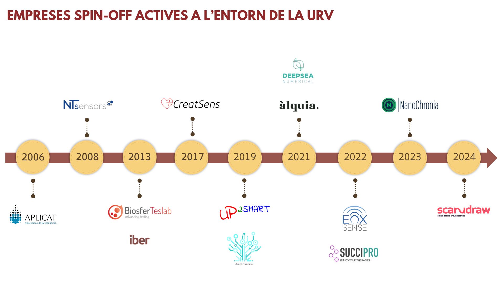 Al llarg de la seva trajectòria, la URV ha impulsat la creació d'empreses innovadores en les que participa el seu personal investigador: les Spin-offs. La constitució i el suport a aquest tipus d'empreses és un mecanisme més de transferència de coneixements, capacitats i tecnologies.