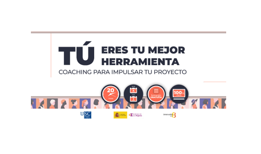 En el marco del Proyecto INNOVATIA 8.3, el Instituto de las Mujeres y la Universidad de Santiago de Compostela organizan la formacón “TÚ ERES TU MEJOR HERRAMIENTA: COACHING PARA IMPULSAR TU PROYECTO”. Se trata de una propuesta formativa centrada en el coaching como herramienta clave de desarrollo personal y profesional, dirigida a mujeres del ámbito universitario que estén emprendiendo o en fase de desarrollo de su proyecto. A través de una metodología práctica de coaching, podrás avanzar en tu proceso desde el autoconocimiento, la toma de decisiones consciente y la definición de objetivos claros.
