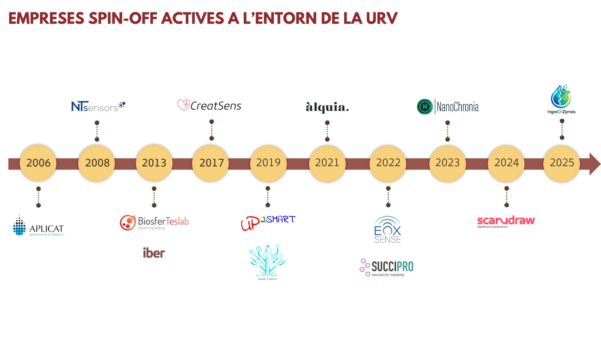 A lo largo de su trayectoria, la URV ha impulsado la creación de empresas innovadoras en las que participa su personal investigador: las Spin-offs. La constitución y el apoyo a este tipo de empresas es un mecanismo más de transferencia de conocimientos, capacidades y tecnologías.